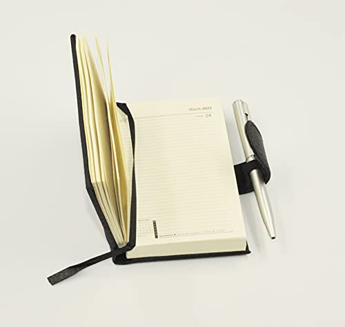 Premium 2022 zakdagboek met pen. Afmetingen 105mm x 74mm (4.1″ x 2.9″).