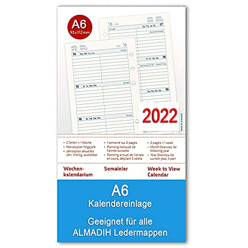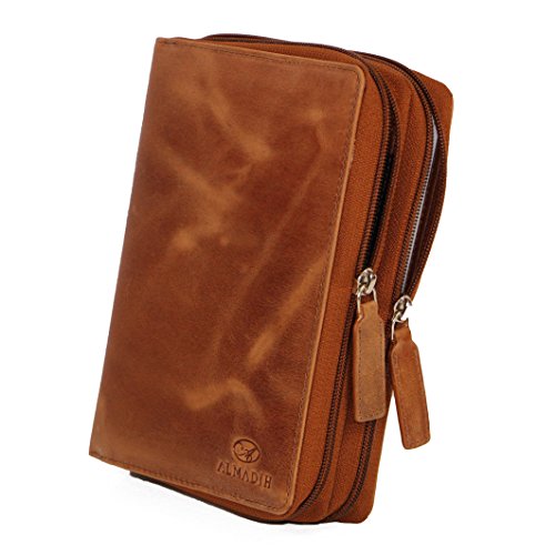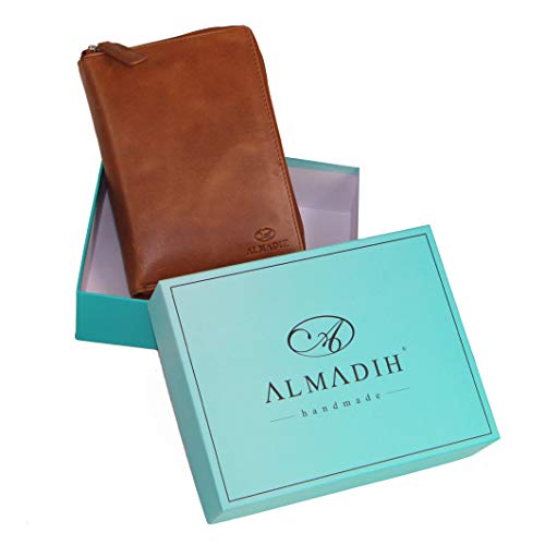 ALMADIH Lederen A6 combimap, 2 vakken met ritssluiting, kalender 2023, premium rundleer, bruin, deluxe in geschenkdoos…