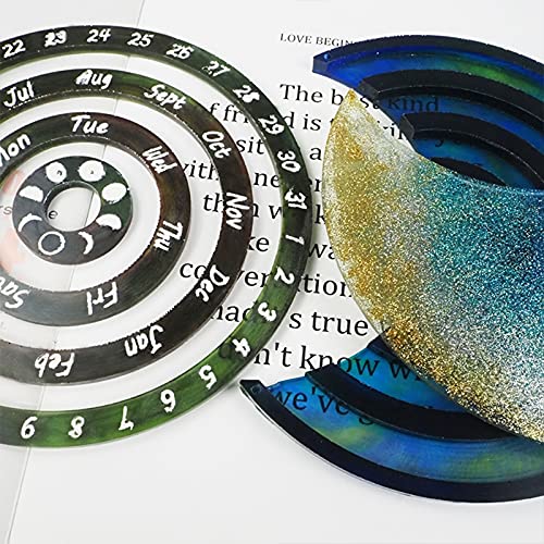 Specification: BLENGA Draaibare maanfase eeuwigdurende kalender siliconen mal voor hars gieten DIY muur opknoping kalender epoxy…