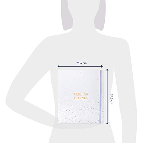 Mooie hardback Wedding Planner, van 21.4cm breed bij 24.3cm hoog. Het prachtige witte reliëf ontwerp en goud verijdelen geven een vleugje luxe om toe te voegen aan de opwinding van het plannen van uw bruiloft.