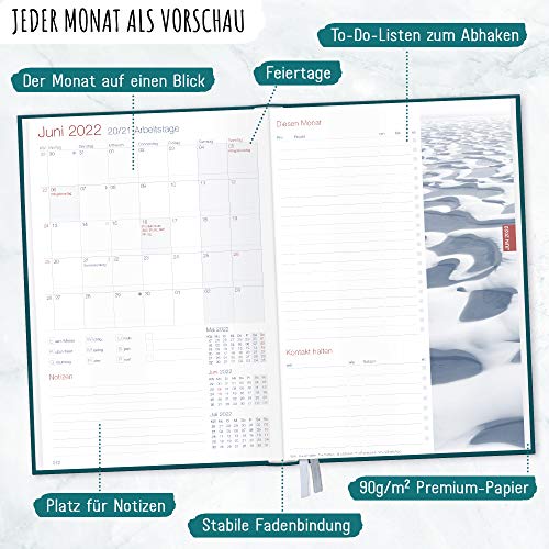Buitengewone extra’s zoals nuttige to-do-lijsten, belangrijke velden, luchthaveninkortingen, info-point, en landenkinkorten maken de Chäff-agenda tot iets heel bijzonders. Dankzij het handige DIN A5-formaat past de timer in elke tas en wordt hij de ideale metgezel in het dagelijkse werk en op zakenreizen. Door de duurzame draadbinding en de flexibele cover met elegante kunstlederen bekleding en foliereliëf is de kalender bijzonder robuust. Bovendien gebruiken we uitsluitend duurzaam papier en klimaatneutrale druk.