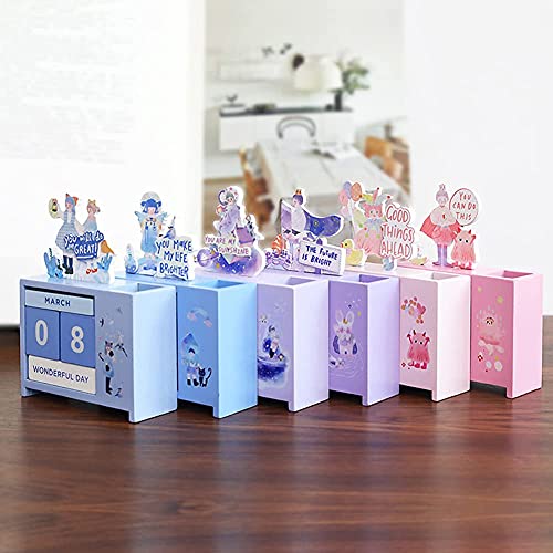 Meerdere keuzes: de eeuwigdurende kalender met pennenhouder kan pennen en andere kleine voorwerpen bevatten. Verschillende thema’s en creatieve patronen zijn beschikbaar, en u kunt verschillende patronen matchen bij verschillende gelegenheden. U kunt de kleurenmodules van verschillende producten gebruiken om overeen te komen met de kleur die u wilt, of u kunt de maand boven of onder zetten op basis van uw persoonlijke voorkeur.