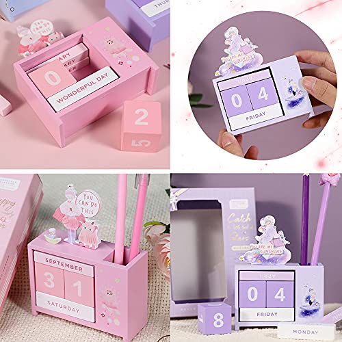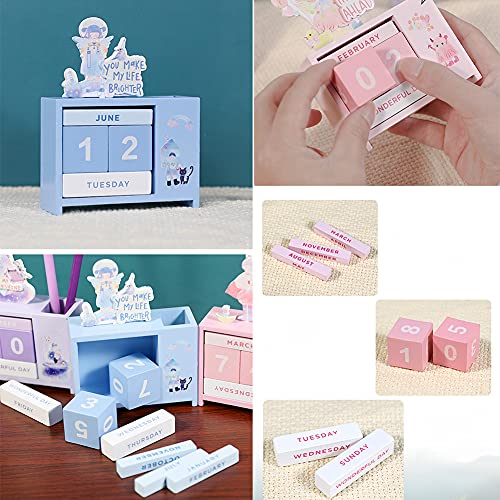 croselyu Houten Eeuwigdurende Kalender Met Penhouder 2022 Creatieve Herinnering Bureau Kalender Decoratie Literaire…