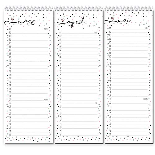 Specification: Verjaardagskalender, confettimotief, spiraalbinding, 105 x 297 mm, jaaronafhankelijk, permanente kalender voor vrouwen…