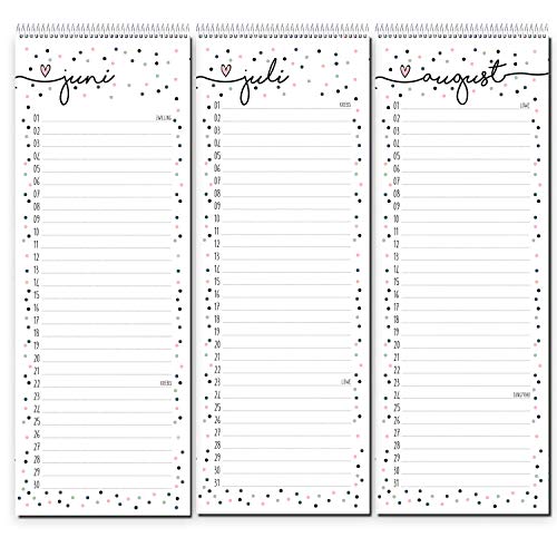 Verjaardagskalender, confettimotief, spiraalbinding, 105 x 297 mm, jaaronafhankelijk, permanente kalender voor vrouwen…