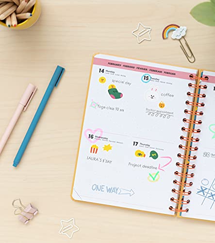 Eriks A5 schoolagenda 21 22 heeft een uniek en trendy design en is onmisbaar voor het plannen van het volgend schooljaar. Dankzij de handige afmetingen 14,8 x 21 cm kan je hem altijd bij je dragen en de wire-o spiraalbinding zorgt ervoor dat je de pagina’s soepel kan omslaan. Hij heeft een harde anti-kras kaft van 1,5 mm met sluitelastiek en bevat vele extra’s zoals 2 stickervellen en een handig opbergvakje achterin. Gebruik de talrijke rubrieken zoals een maandplanner, uurroosters, feestdagen en een kalender met jaaroverzicht. Bevat 173 pagina’s van 100 gr, met genoeg ruimte om je dagelijkse activiteiten te organiseren, to do lijstjes en notities maken en al je ideeën en gedachten op te schrijven. Uitgegeven in het Engels, Duits, Spaans, Italiaans en Portugees, wordt hij geleverd in een maïszak, een biologisch afbreekbaar materiaal om het gebruik van minder plastiek aan te moedigen! Voldoet aan onze kwaliteitseisen en bescherming van het product. Bekijk onze Amazon catalogus en ontdek ons terug naar school assortiment!