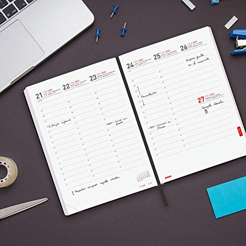 Specification: Finocam – Afsprakenplanner voor 18 maanden 2021 2022 Y10 – 140 x 204 weekweergave, verticaal, zwart, meertalig.