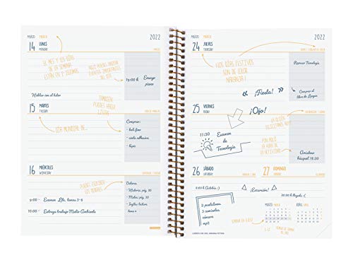 Inhoud: persoonlijke gegevens, schooljaarkalender, lesrooster (3 kwartaal), boek/film/series, kaarten van Spanje, Europa en de wereld, examenwerkvervolging, schooljaarjaar met Engels en nuttige informatie, Engels (onregelmatige verven, voorposities, Phrasal verbs en valse friends), wiskunde (geometrie) AnAnAnAnAnAnAnAnAnAnAnAnAnAnAnAnAnAnAnAnAnAnAnAnAnAnAnAnAnagragragraafafafen vertragingen, aanvraag voor interviews, contacten, vellen voor notities en toespraken en 140 gekleurde stickers. Met informatie over de Spaanse feestdagenplanner in het Spaans met tweetalige jaren, Spaans en Engels.