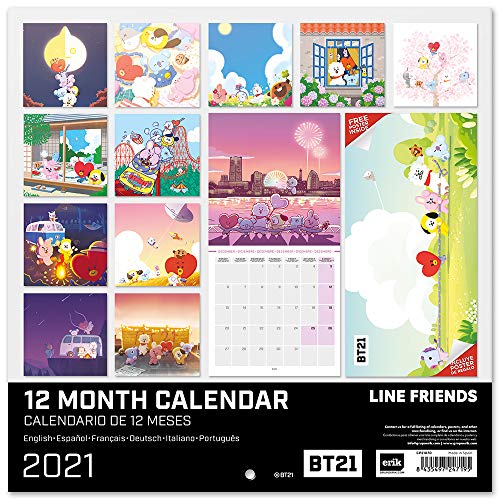 Grupo Erik Officiële BT21 2021 Wandkalender 11,8 x 11,8 inch (12 maanden – gratis poster inbegrepen) Familie Planner…