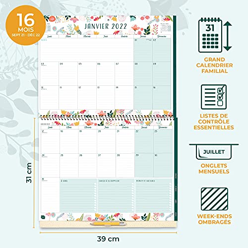 ORGANISE YOUR HOME WITH THIS MONTHLY PLANNER – Stunning family calendar 2021 2022 runs Sept ’21 – Dec ’22. In full colour with monthly tabs, easy to view numbers & shaded weekends for easy planning.