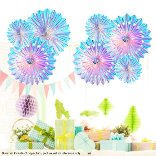 Specification: Iriserende hangende decoraties ronde folie decoratieve vouwventilatoren regenboog glans party ornamenten voor bruids…