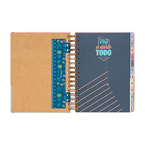 Bevat: 368 pagina’s, 80 g/m² papier, motiverende citaten, scheidingsbladen met tabbladen voor elke maand, transparant binnenvak, liniaal van kunststof, 8 vellen met stickers, leuke spellen en extra’s, tijdschema’s, kalenders, pagina om te noteren, contacten, Spaartabellen, elastisch elastiek, maandplanner aan het begin van elke maand. ForForForForForForForForForSuperleuk maandleven, FSC-gecertificeerd.
