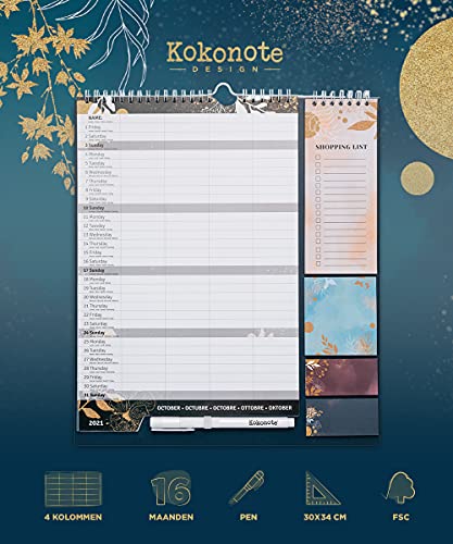 Specification: Kokonote CPF21009 Kalender 2021 2022 Glitter, Wandkalender