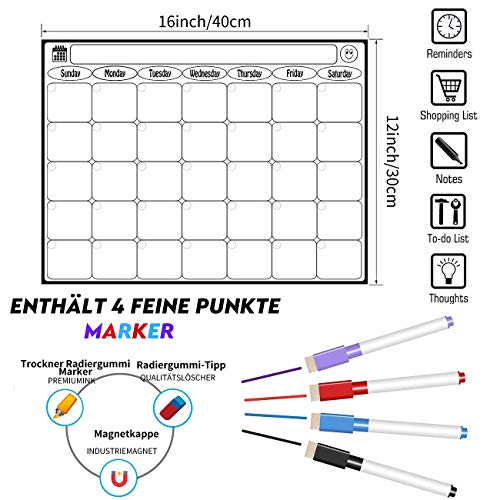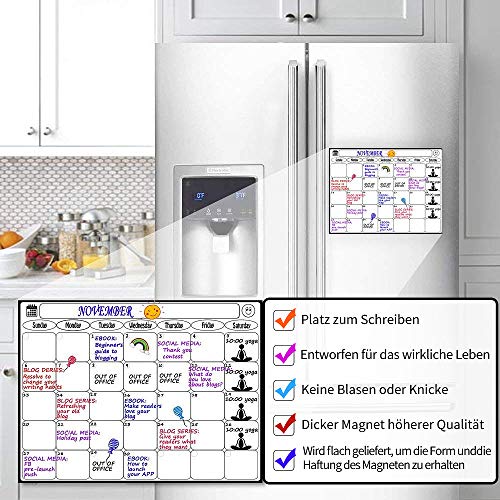 Herbruikbaar & milieubescherming: groot formaat met ultradik papier, vulstoffen of markers verven niet, gewoon schrijven en afvegen onderliggende pagina’s; je droog afwisbare kalender kan maand na maand opnieuw worden gebruikt. Geen papierverspilling, milieuvriendelijk en geen milieuvervuiling.