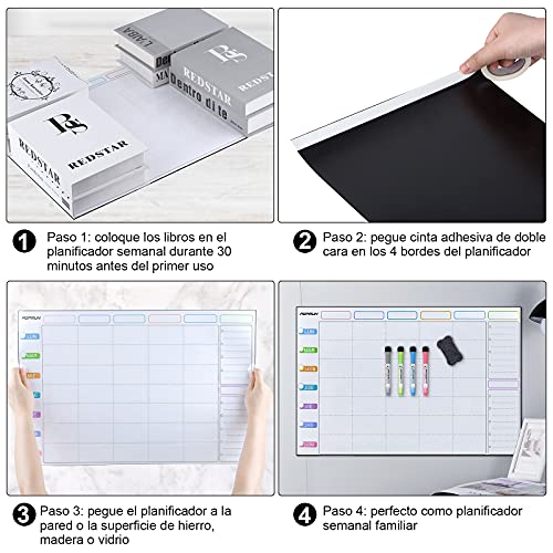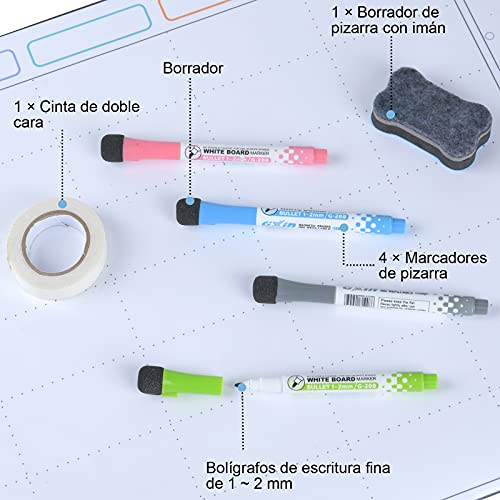 Specification: POPRUN 60 × 40 cm Magnetische Wekelijkse Familie Meal Planner voor Muur,Whiteboard Menu Planning Board, Droog Veeg Actie…