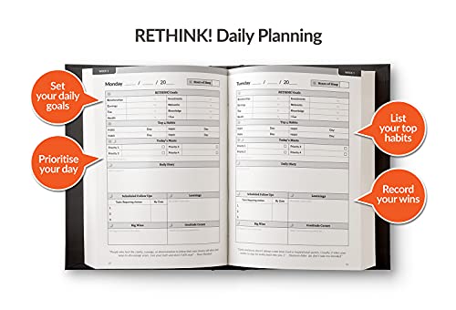 De ReThink Daily Planner – heroverweeg de manier waarop u prioriteit, plan en beheer uw tijd U staat op het punt om de must have daily planner te ontdekken die u in staat stelt om een veel productiever en gelukkiger leven en ervaring te leiden. Heb je gemerkt met elke maand die voorbij gaat dat je voortdurend busier? Vind je het vinden van je leven is uitgegroeid tot een constante strijd om “tijd te vinden” om de dingen te doen die je echt wilt doen? Je bent niet alleen! In de huidige wereld leven we meestal onder een gemeenschap van sterk gestreste individuen “druk” haasten van de ene taak naar de andere. Het advies dat we meestal ontvangen is dat we worstelen met onze “time management” vaardigheden. De Rethink Planner daagt dit idee uit en geeft je in plaats daarvan een alternatieve benadering om je leven te beheersen dat geworteld is in tijdloze waarheden en wijsheid. Deze onderzochte, geteste ‘Rethink Planner’ aanpak wordt prachtig gepresenteerd als een 90-dagen planner en bevat wekelijkse, maandelijkse en driemaandelijkse beoordeling met doelinstelling, vooruitgang tracking en gewoonte vormen secties om de positieve mindset en gewoonten te creëren die nodig zijn om een gelukkiger en productiever leven te leiden Met ingebouwde productiviteitsbeoordelingen, gewoonten scorekaarten, dagelijkse planner en reflectie en dankbaarheid beoordelingen, dit planner zal uw dagelijkse routine volledig. Gebruik de Rethink Planner elke dag om: >> Geef prioriteit aan uw doelen en projecten >> Heroverweeg uw mindset voor groei, focus en productiviteit >> Volg slaap, uiten dankbaarheid en notitie lessen die geleerd zijn >> Vorm levensveranderende gewoonten > Beoordeel uw prestaties >> Strategisch plannen en beoordelen van dag, week, maand en kwart >> 7″ x 24.11 alleen cm executive ‘tablet’ formaat. >> Inclusief wekelijkse, maandelijkse en driemaandelijkse beoordeling. >> 90-dagen planner met doel instelling, voortgang tracking en gewoonte vormen secties