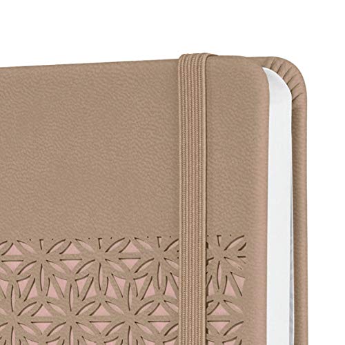 Beige weekkalender, looptijd januari – december 2020, hardcover met geraffineerde stansen in het formaat ca. A5 (13,5 x 20,3 cm), 174 pagina’s, weekoverzicht op een dubbele pagina.