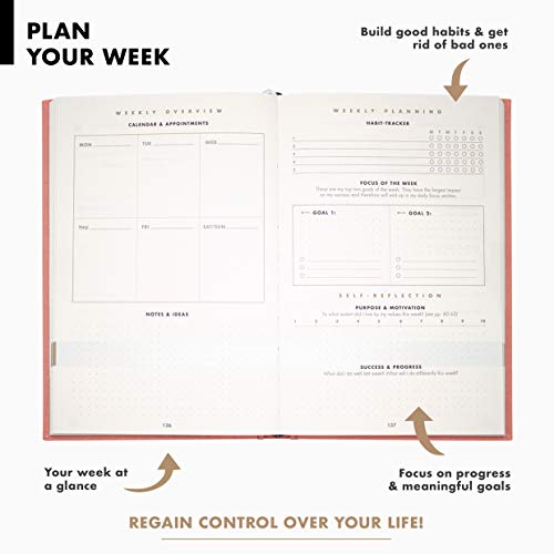 ✅ FOCUS & CONCENTRATIE OP DE ESSENTIALS gemakkelijk gemaakt – Met de goed doordachte dagelijkse planner filter je elke dag de taken met de grootste positieve impact op je leven. Op deze manier streef je doelen en visies na die anders worden bedekt door afleiding. Zeg ‘nee’ tegen hectiek en chaos en ‘ja’ tegen meer duidelijkheid, focus en innerlijke rust.