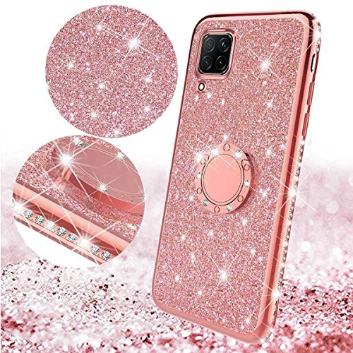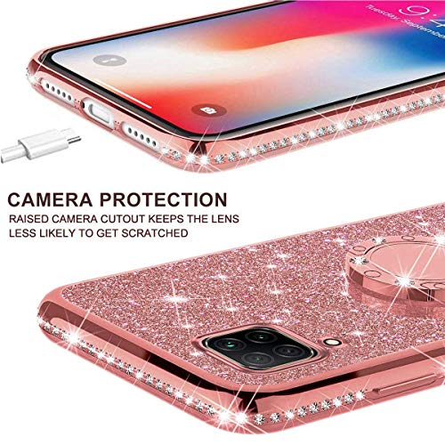 Uposao Compatibel met Huawei P40 Lite Case Cover met Diamand Ring Houder Kickstand Sparkle Glitter Zachte Siliconen Gel…