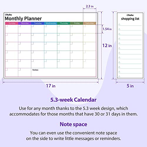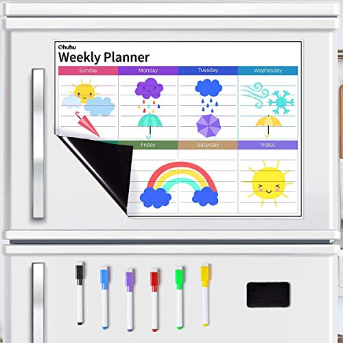 MULTIFUNCTIONAL 5.3 WEEK FRIDGE KALENDAR: Krijg al uw taken, activiteiten en herinneringen op één plaats met de 5,3 weken beschikbare ruimte voor de 30e en 31e van enkele maanden. Ohuhu koelkast whiteboard heeft ook ruimte aan de zijkant om notities te schrijven en kan worden bevestigd aan de koelkast, het bureau of overal anders waar u nodig hebt om toegang te krijgen tot uw kalender.