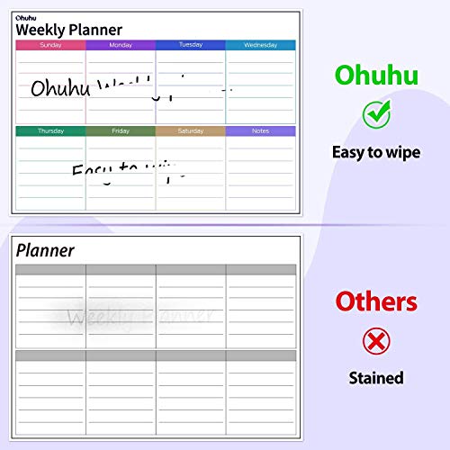 Vlekbestendig & wisst eenvoudig koelkast KALENDER: U hoeft zich geen zorgen te maken over het vlekken van koelkast whiteboard. Ohuhu koelkast whiteboard is gemaakt van hoogwaardig PET zodat het droog kan worden afgeveegd zonder vlekken. Schrijf er onmiddellijk op zonder eeuwig te wachten tot het droog is.