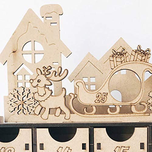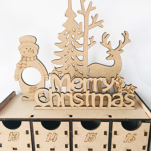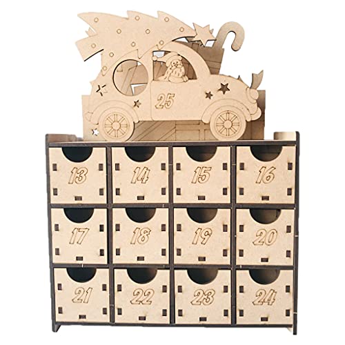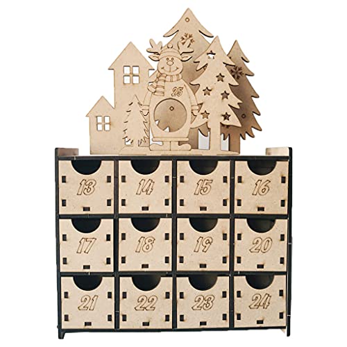 yhengg Kerst Houten Countdown adventskalender Box DIY 24 laden Candy Gift Boxes