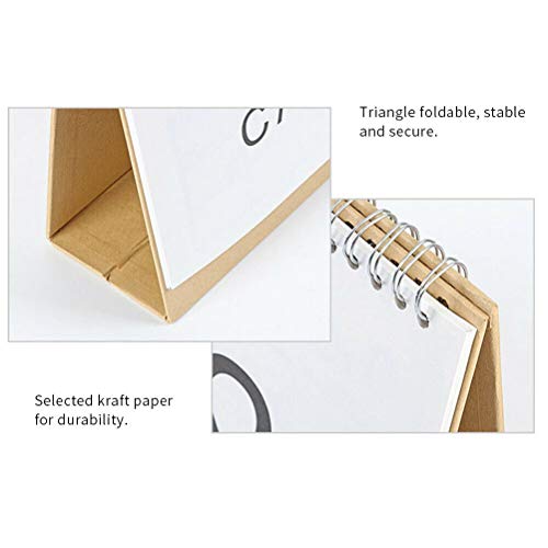 Geselecteerd hoogwaardig papier, duidelijke opdruk, de voorkant van deze kalender is de datum, de achterkant kan maandplannen, memo’s enz. schrijven, je kunt een jaar-/maandplan maken of aan belangrijke dagen herinneren, driehoekig opvouwbaar design.